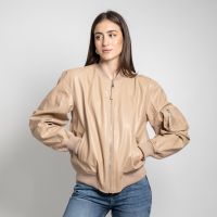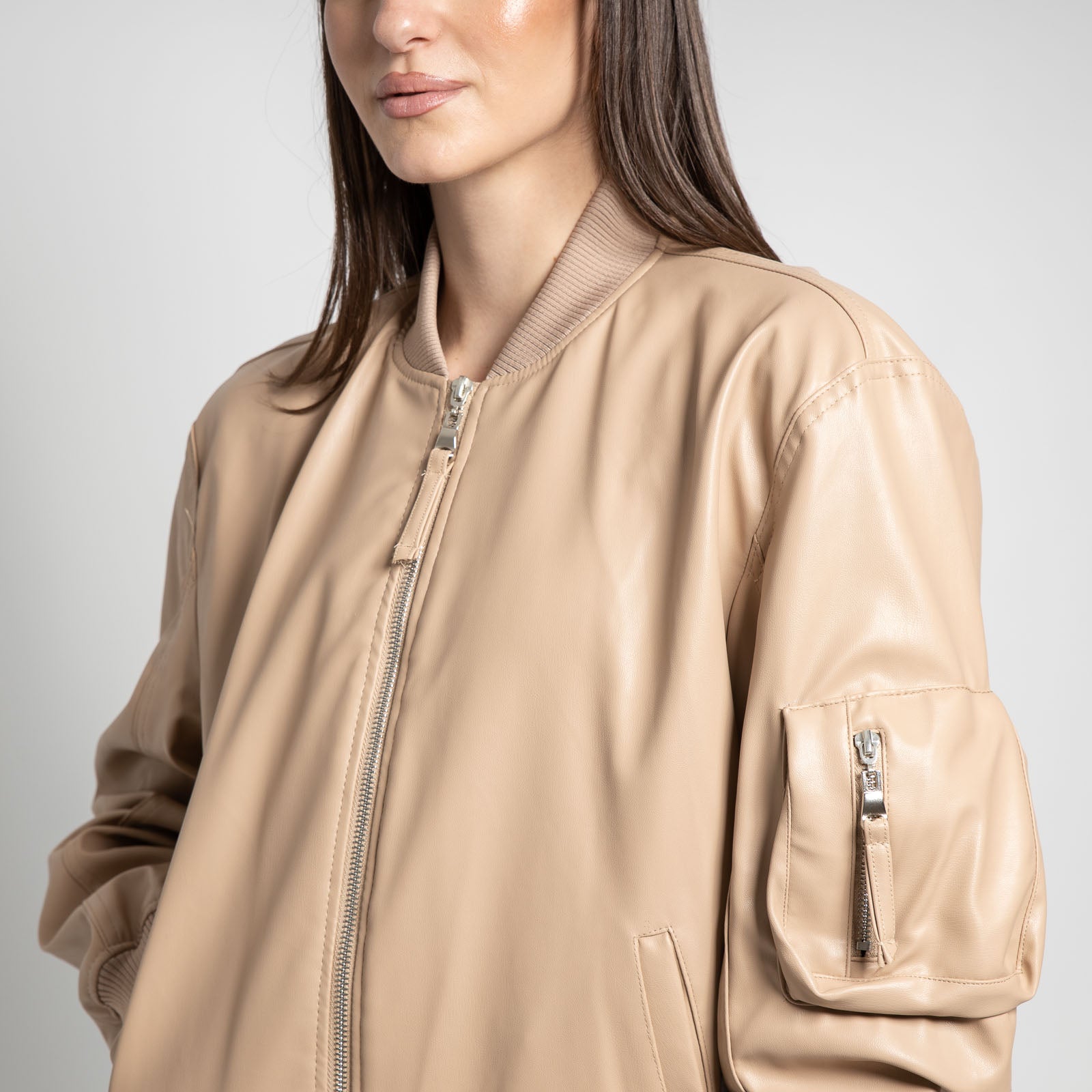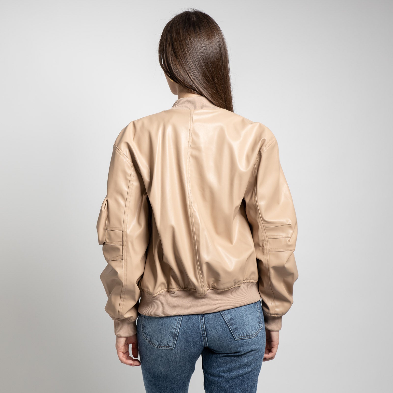 Απογείωσε το street style σου με το Bomber Δερμάτινο Μπουφάν Μπεζ!