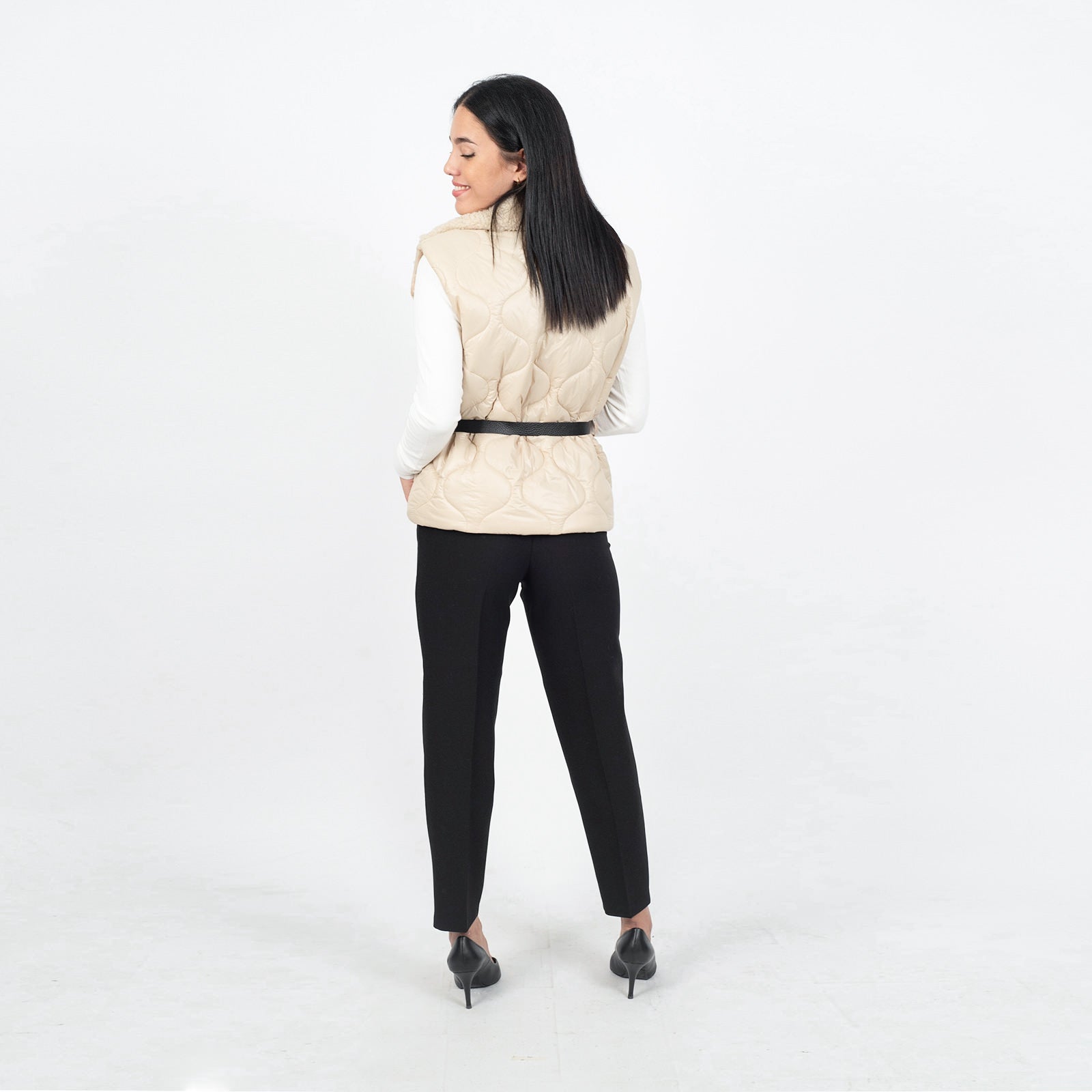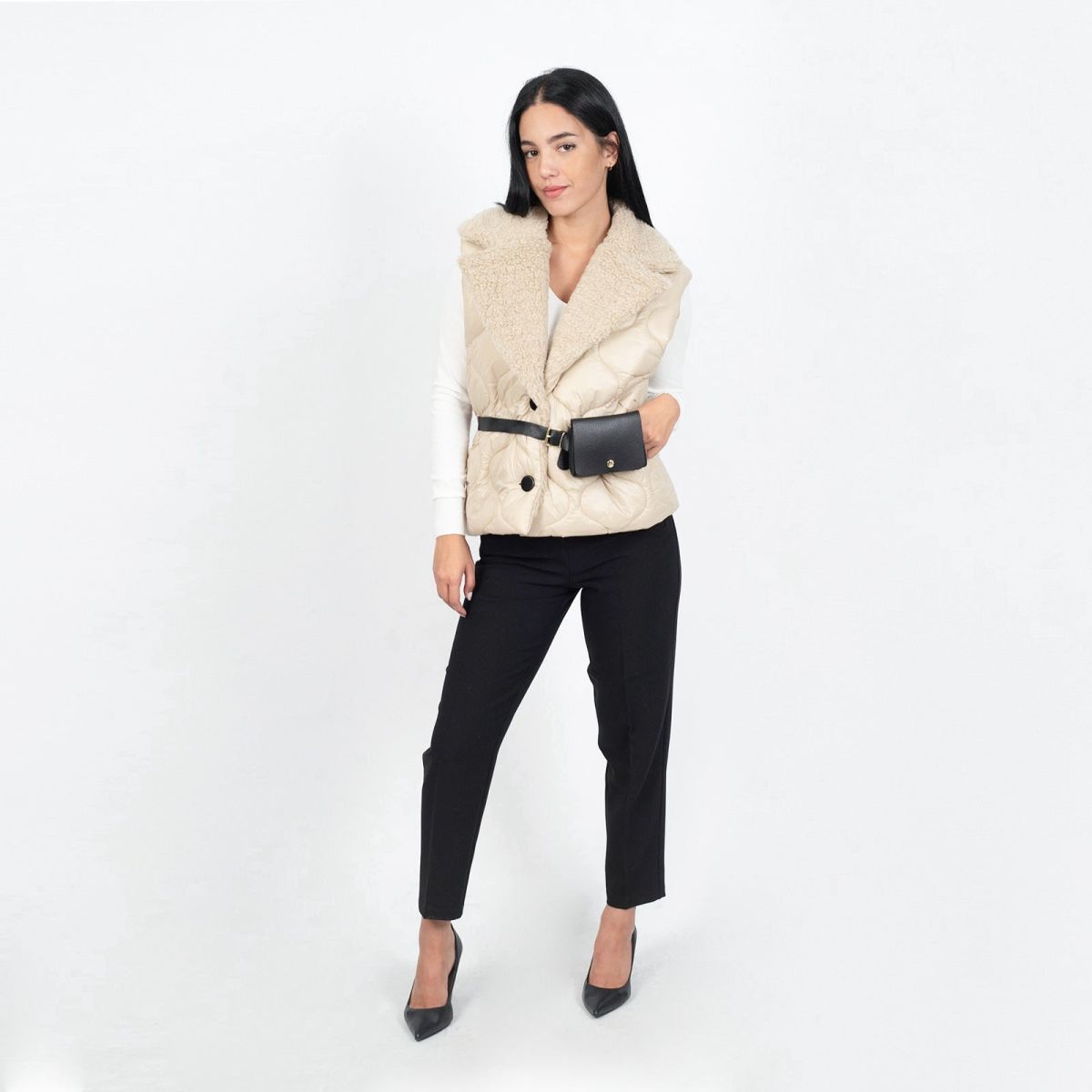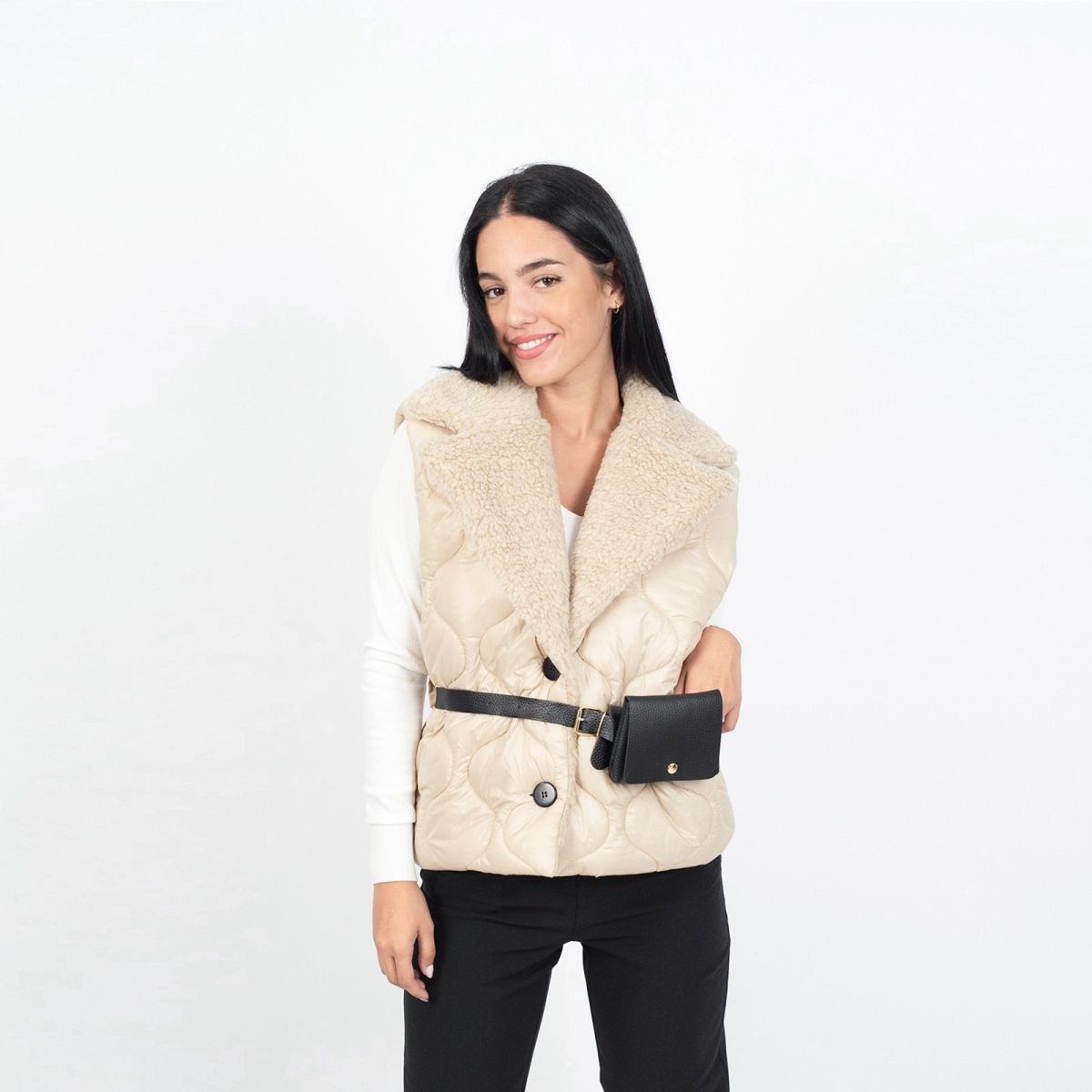 Καπιτονέ γιλέκο με γούνινη επένδυση και ζώνη με τσαντάκι στην μέση.