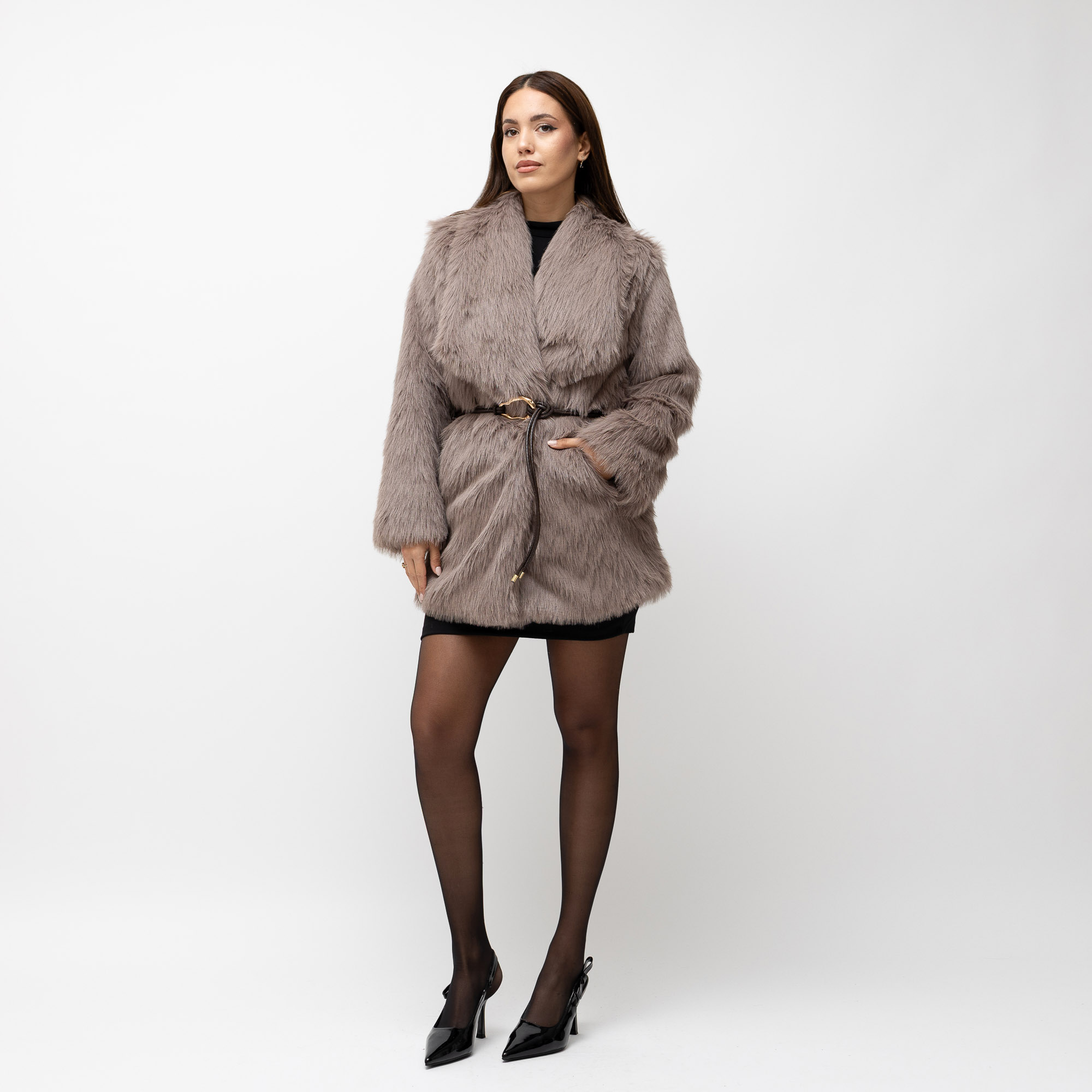 Η Κοντή Γούνα Με Ζωνάκι της νέας συλλογής του Fashioncore είναι η τέλεια λύση για elegant χειμερινές εμφανίσεις με διακριτική πολυτέλεια. Η απαλή, πυκνή γούνα της χαρίζει αίσθηση άνεσης και ζεστασιάς, ενώ το ζωνάκι στη μέση επιτρέπει να τονίσεις τη σιλουέτα σου όπως ακριβώς θέλεις.