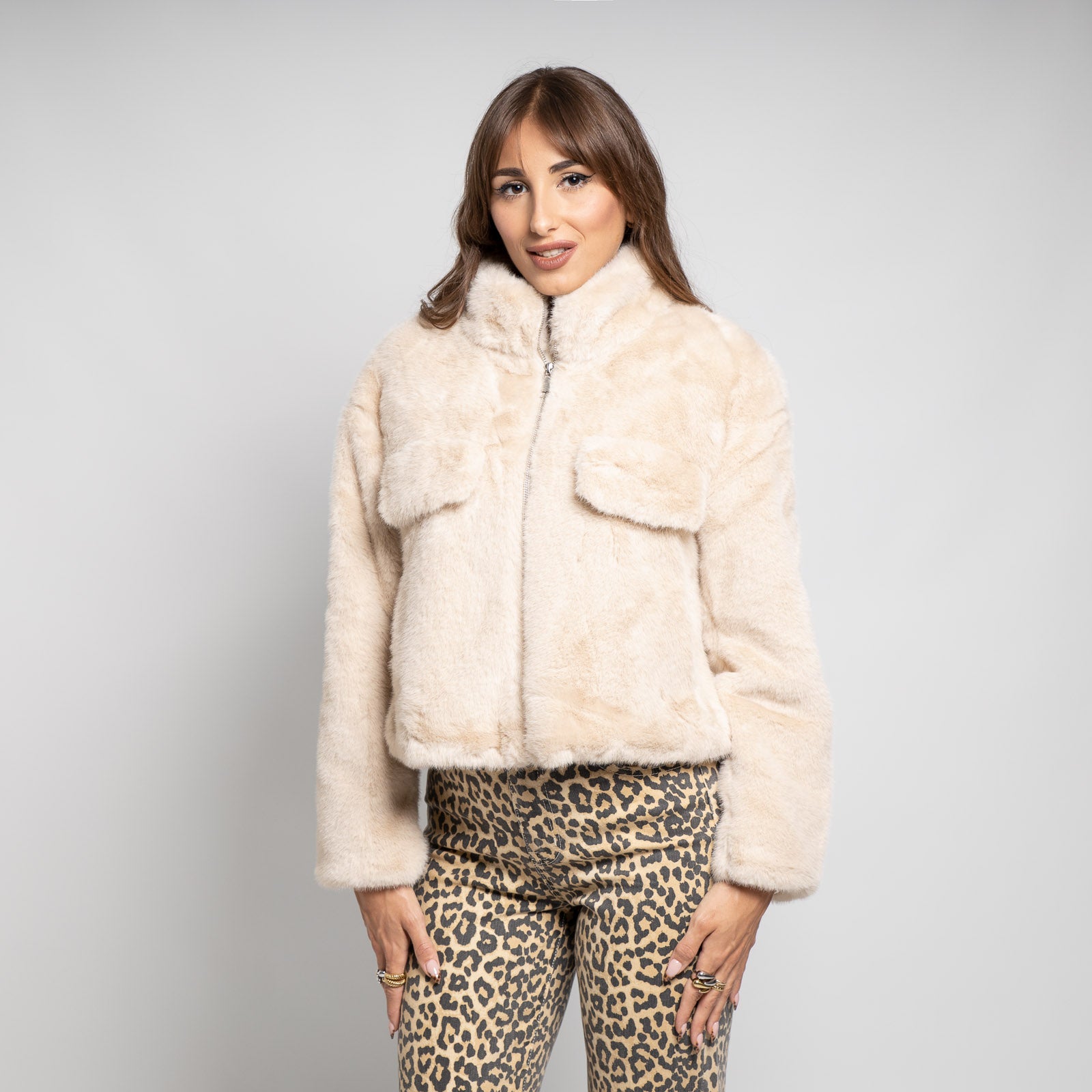 Το Κοντό Γούνινο Μπουφάν Εκρού της νέας συλλογής του Fashioncore είναι η απόλυτη επιλογή για να αναβαθμίσεις τις καθημερινές σου εμφανίσεις.