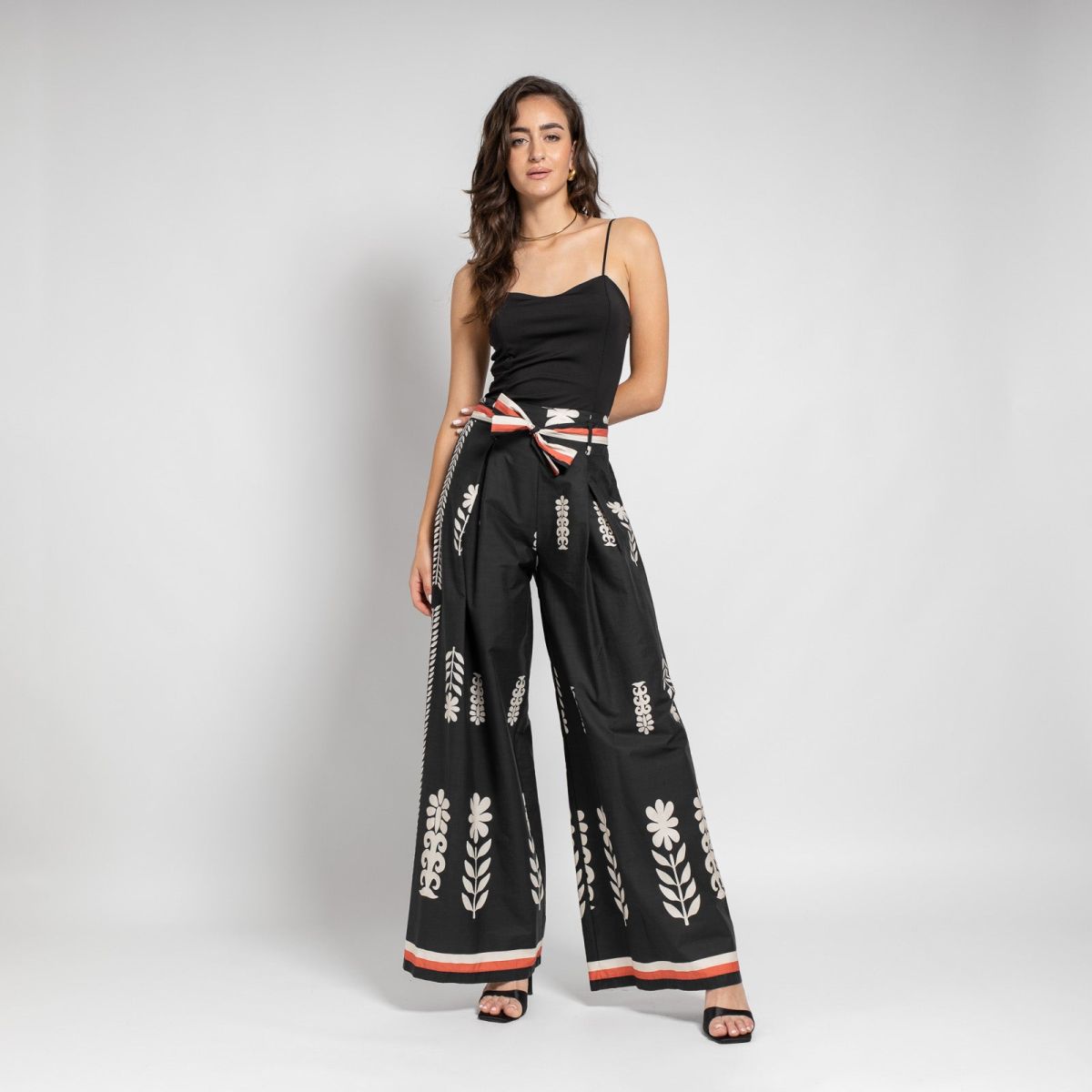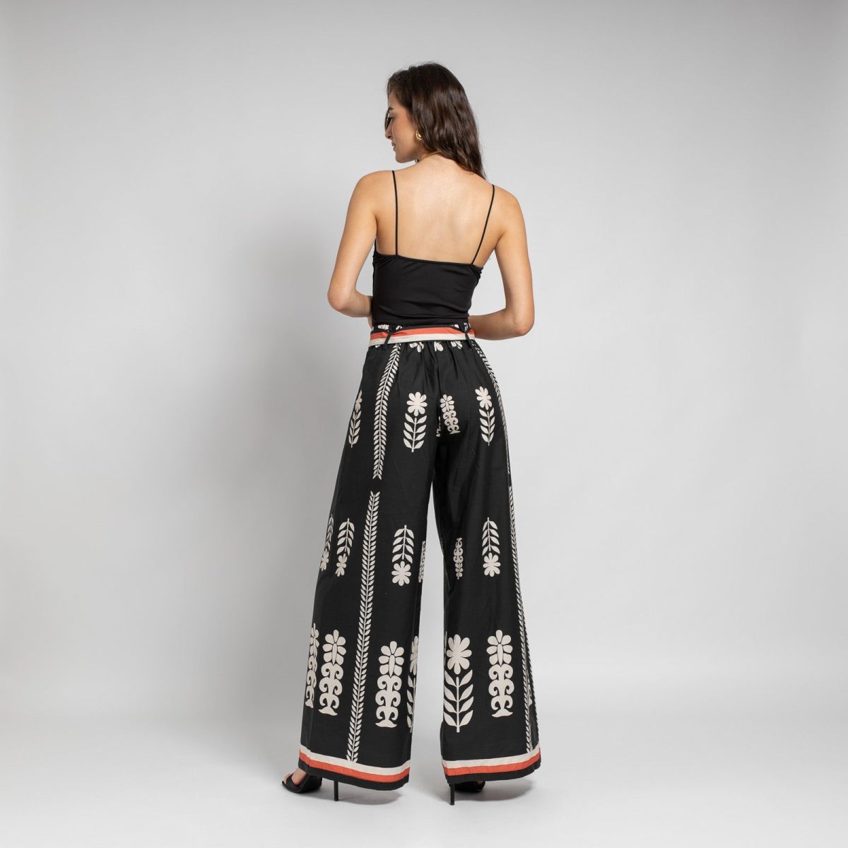 Ξεχώρισε με κάθε σου βήμα με την Παντελόνα με Λουλούδια Μαύρο του Fashioncore!