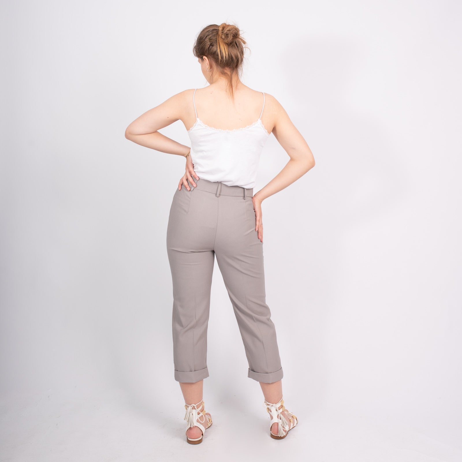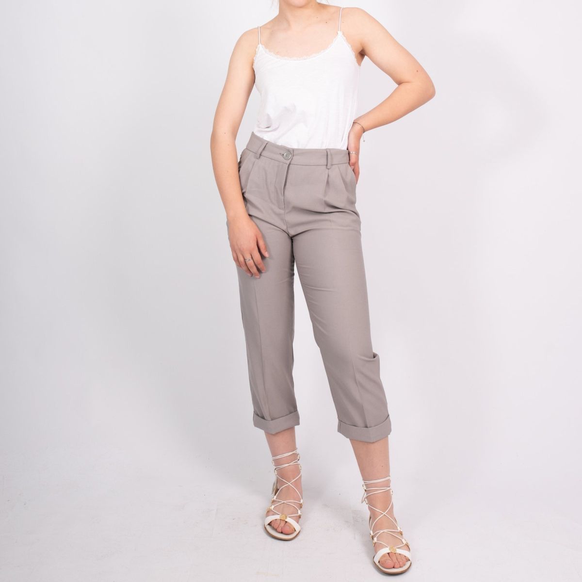 Παντελόνι με ρεβέρ. Διαθέτει θηλάκια για ζώνη, φερμουάρ και τσέπες μπροστά.