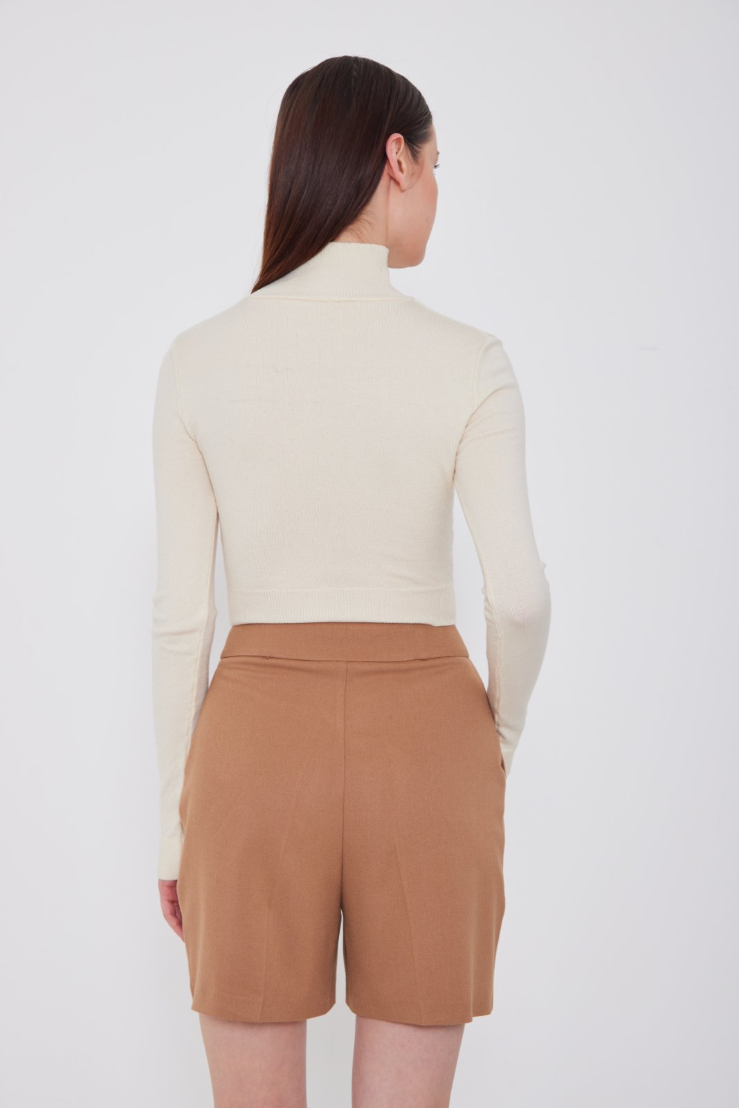 Crop top πλεκτό ζιβάγκο με λάστιχο στα μανίκια και στο τελείωμα. Διαθέτει ελαστικότητα.