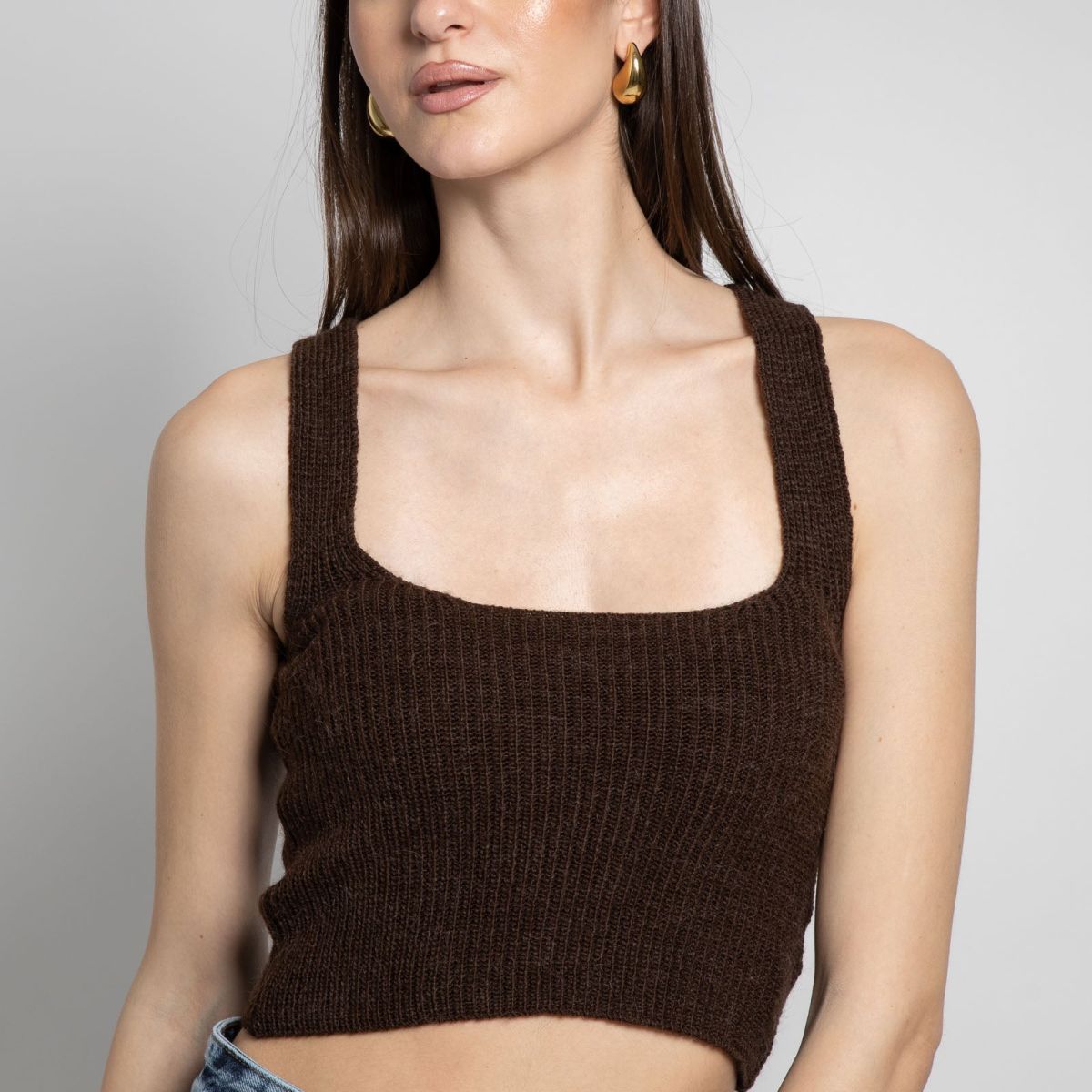 Πλεκτό ζιβάγκο που αποτελείται από δύο κομμάτια. Ένα τοπάκι με χοντρή τιράντα και ένα crop top ζιβάγκο.
