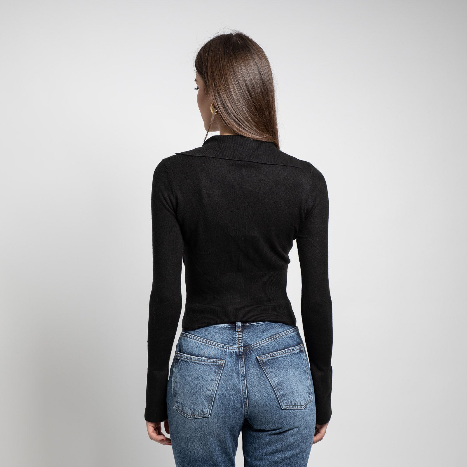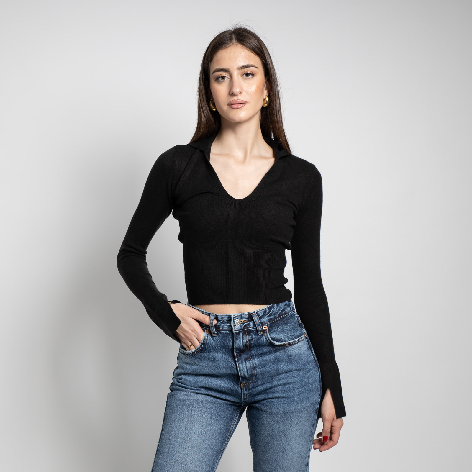 Πλεκτό Πόλο Μπλουζάκι Μαύρο