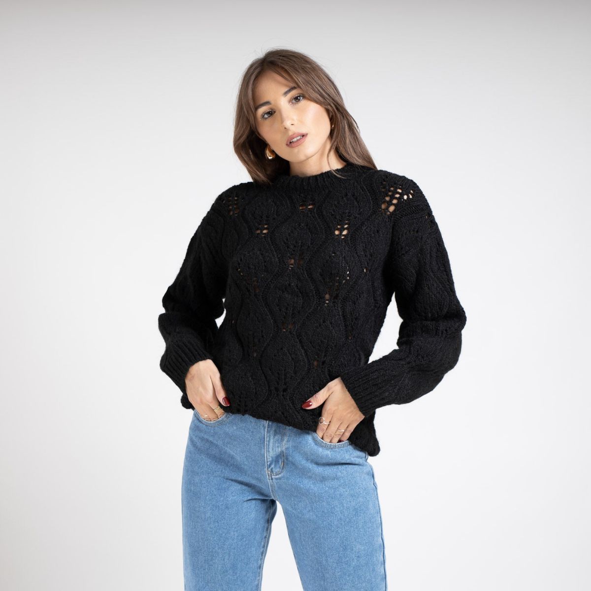 Συγκέντρωσε όλα τα βλέμματα πάνω σου με Πουλόβερ Διάτρητο Μακρυμάνικο Μαύρο εμφάνιση που σε κάνει να ξεχωρίζεις κάθε στιγμή