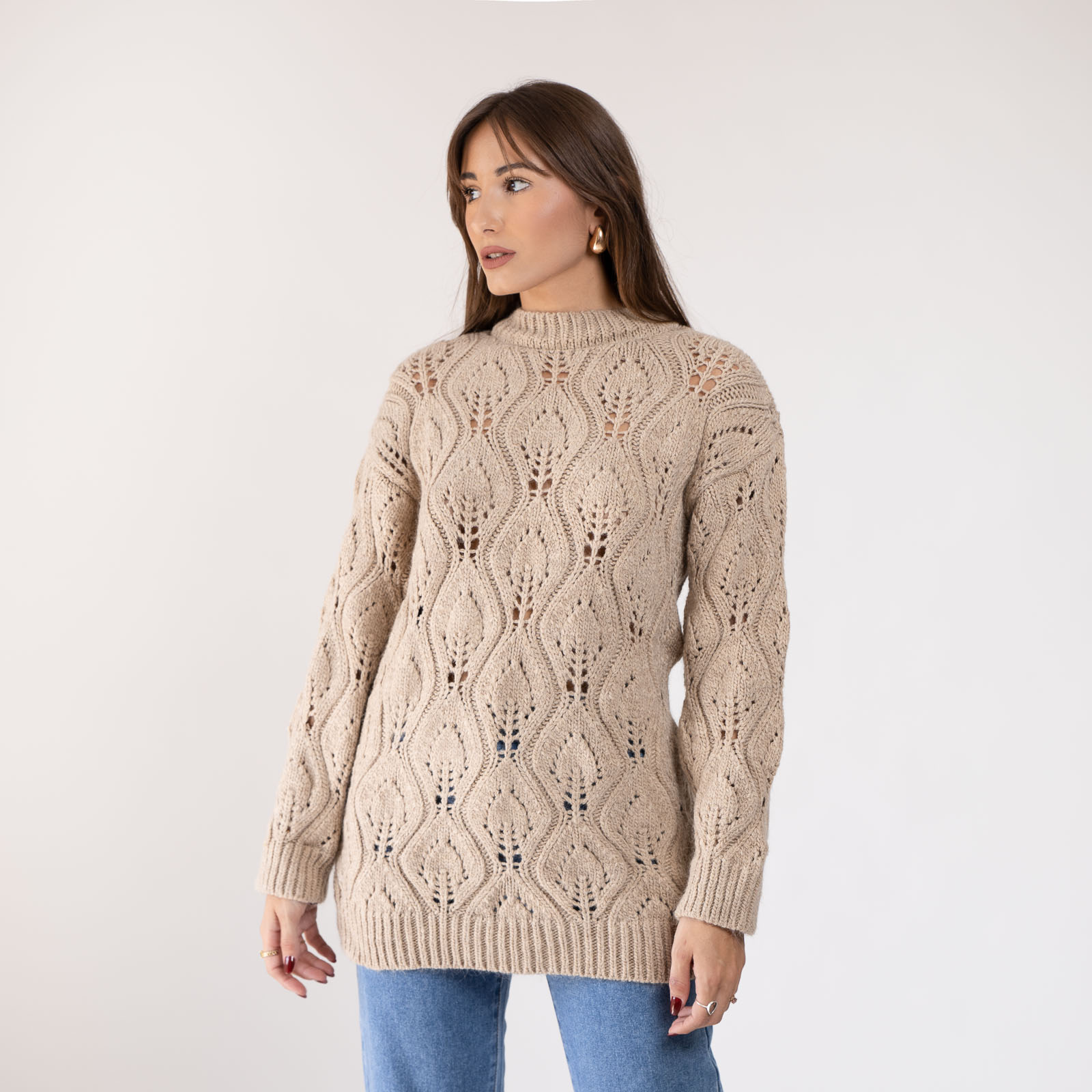 Πουλόβερ Διάτρητο Μακρυμάνικο Μπεζ