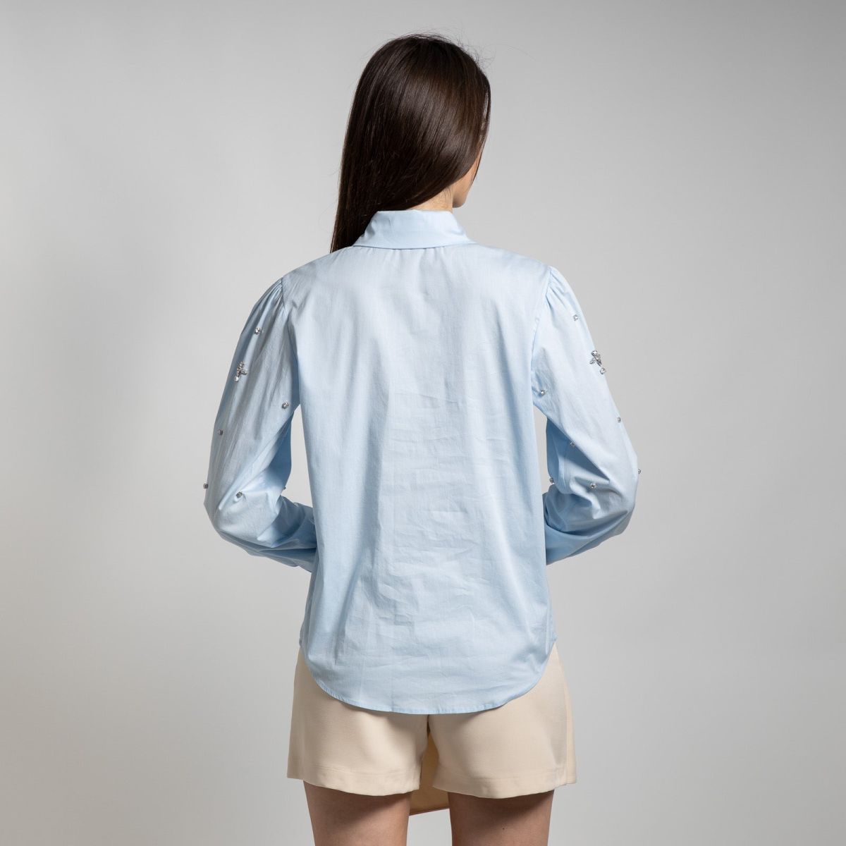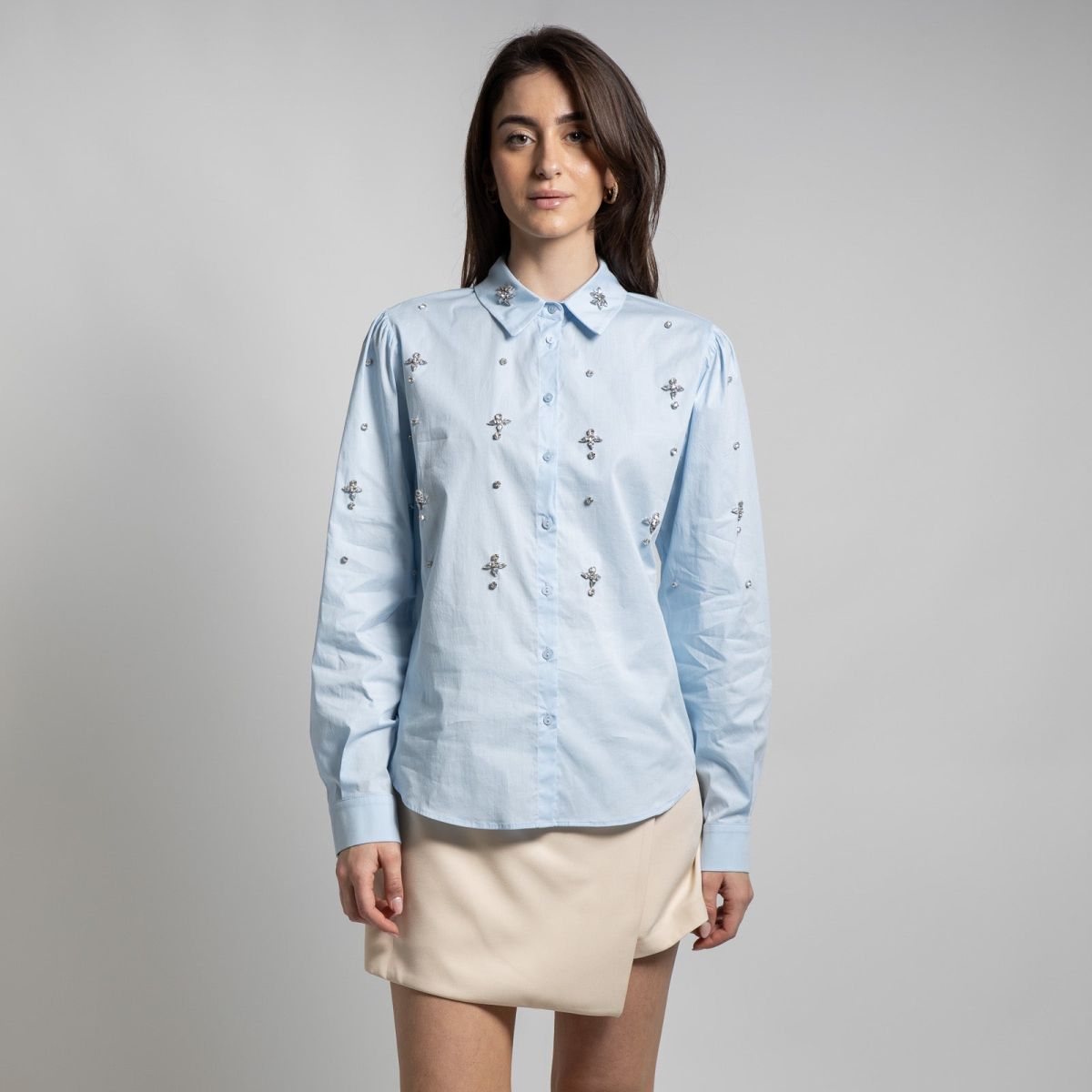 Μακρυμάνικο Πουκάμισο Με Strass Θαλασσί