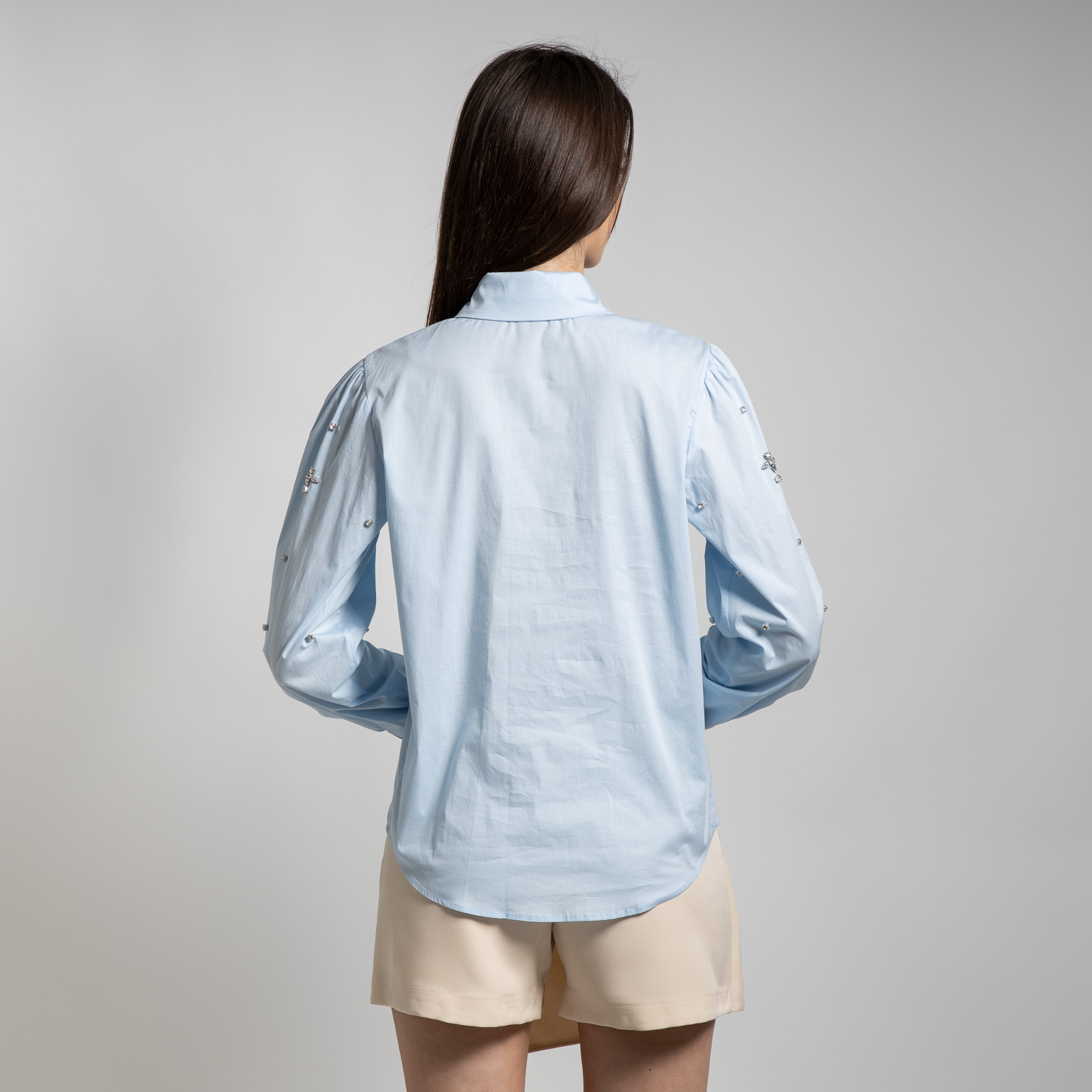 Μακρυμάνικο Πουκάμισο με Strass Θαλασσί