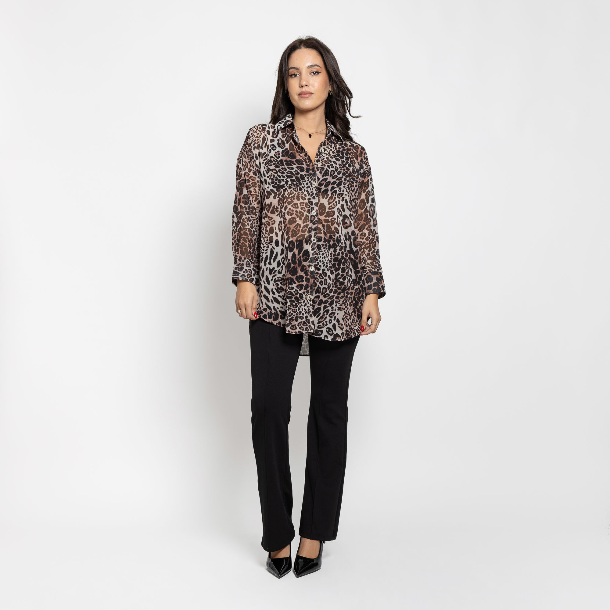 Διάφανη πουκαμίσα με animal print σχέδιο.