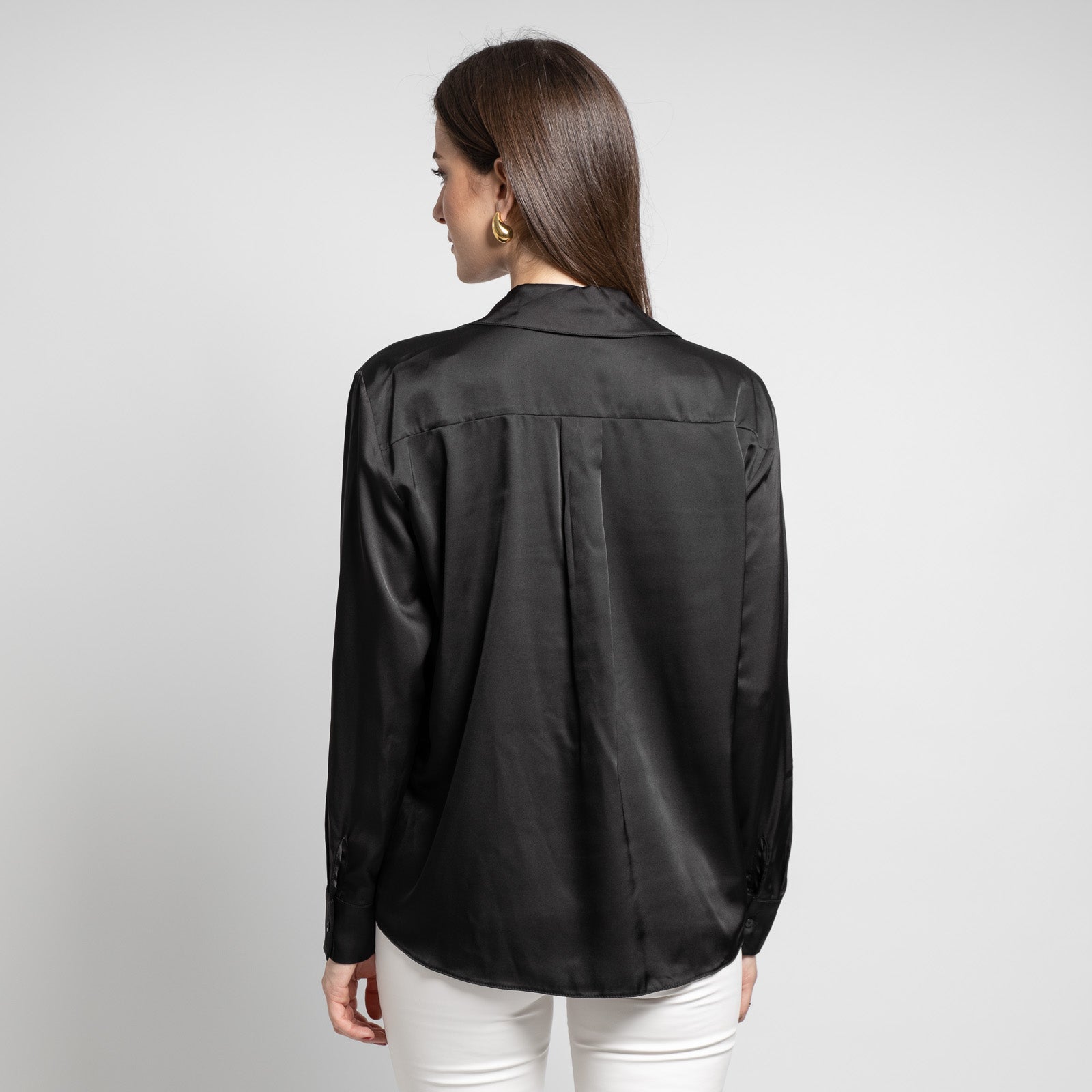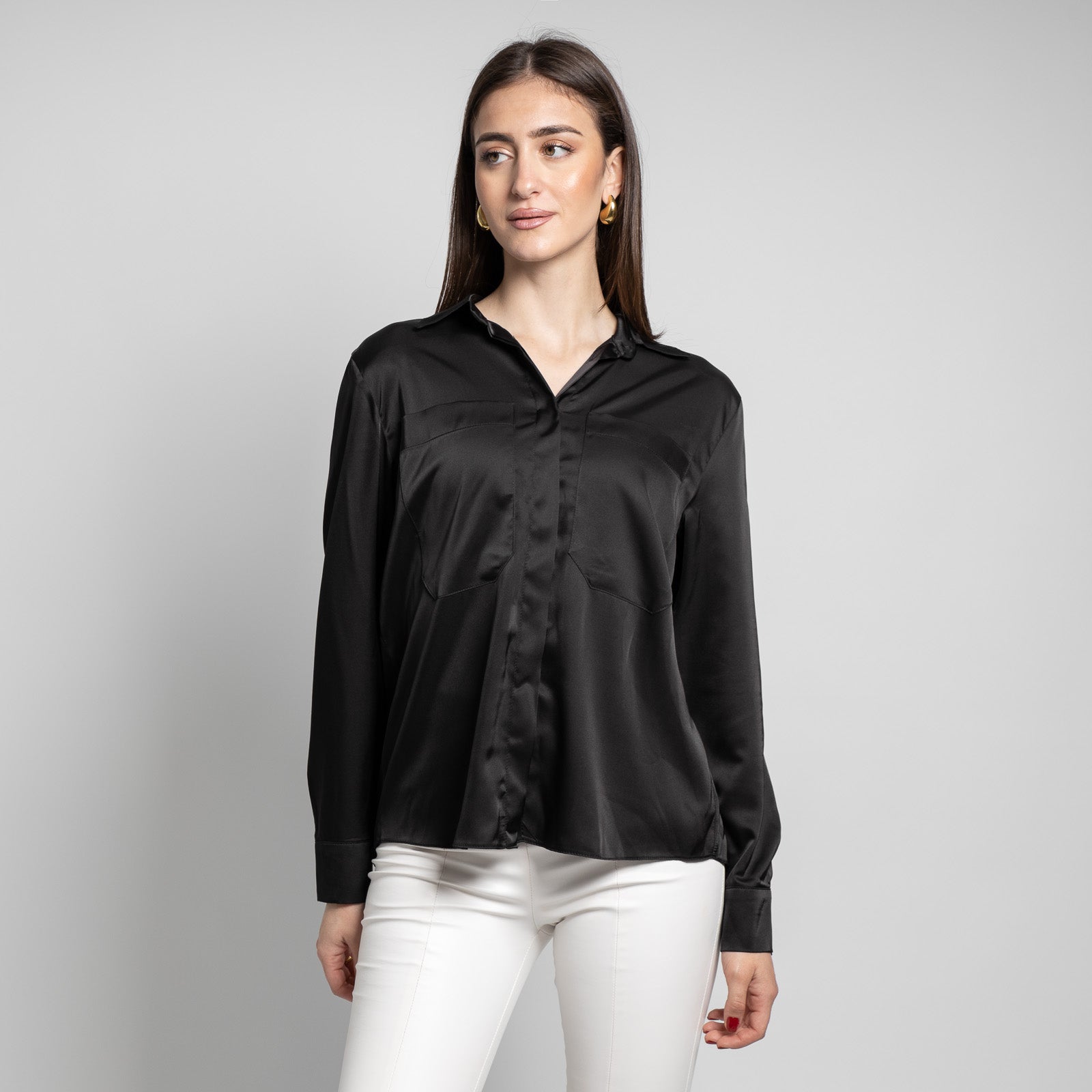 Συγκέντρωσε όλα τα βλέμματα πάνω σου με Σατέν Πουκάμισο Μαύρο εμφάνιση που σε κάνει να ξεχωρίζεις κάθε στιγμή