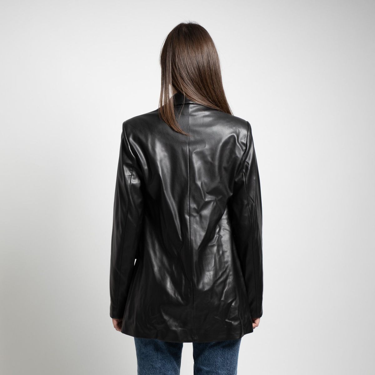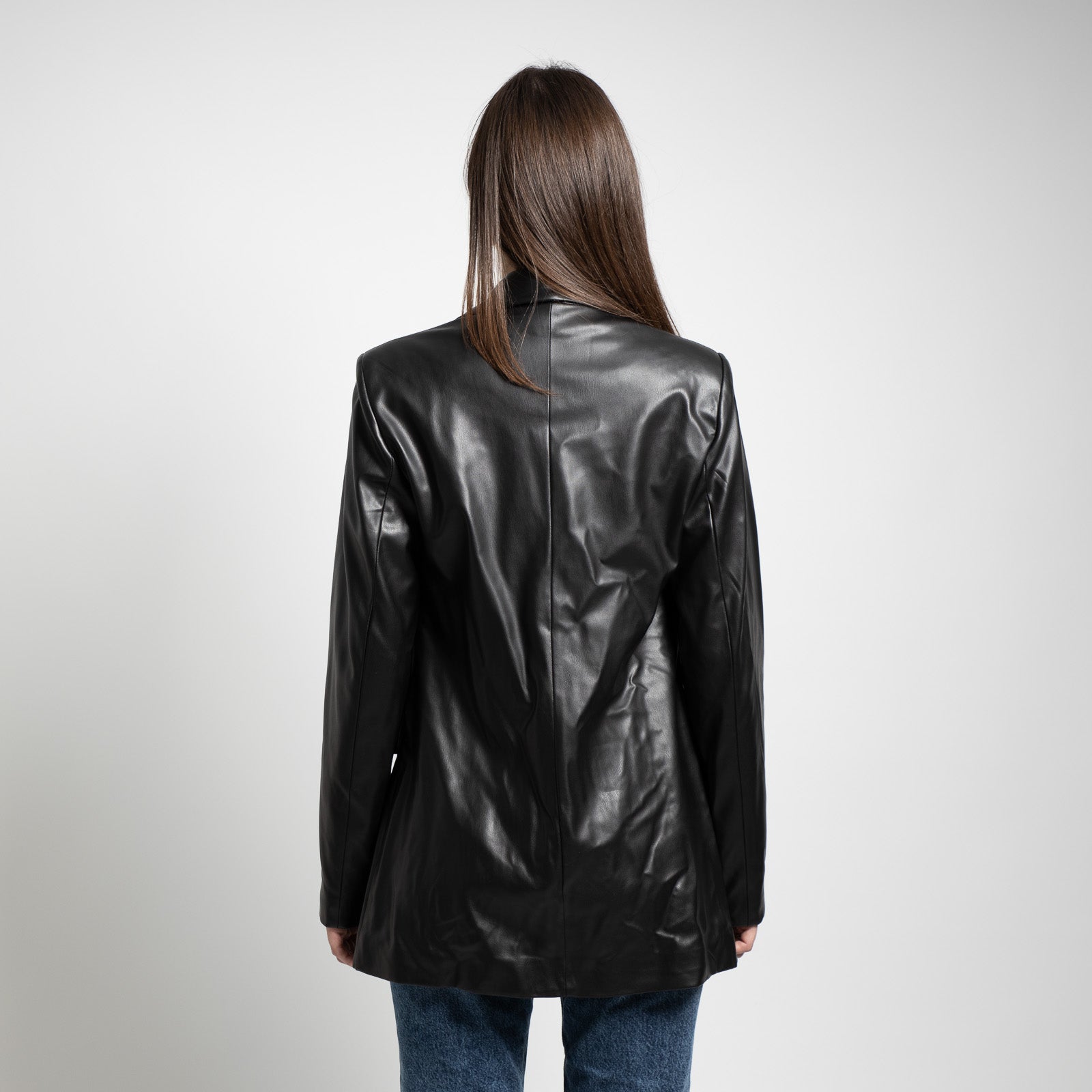 Δερμάτινο vegan σακάκι. Διαθέτει διακοσμητικές τσέπες μπροστά και μία στο πέτο και κλείνει με ένα κουμπί. Διαθέτει φόδρα εσωτερικά.
