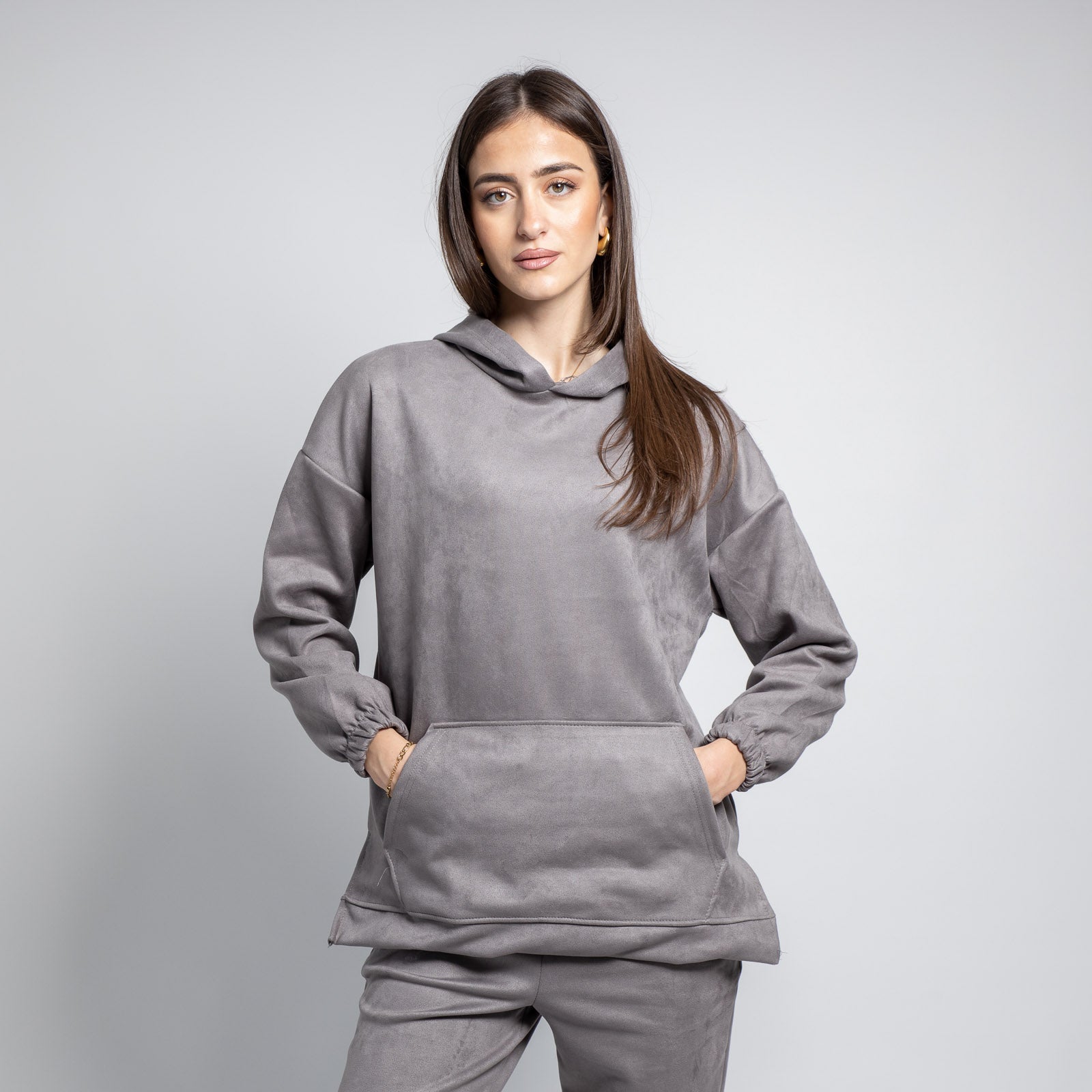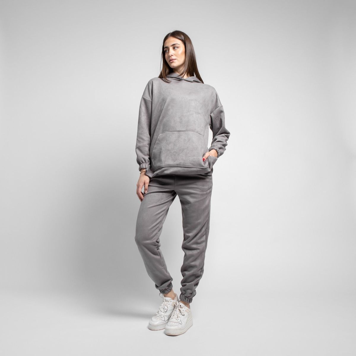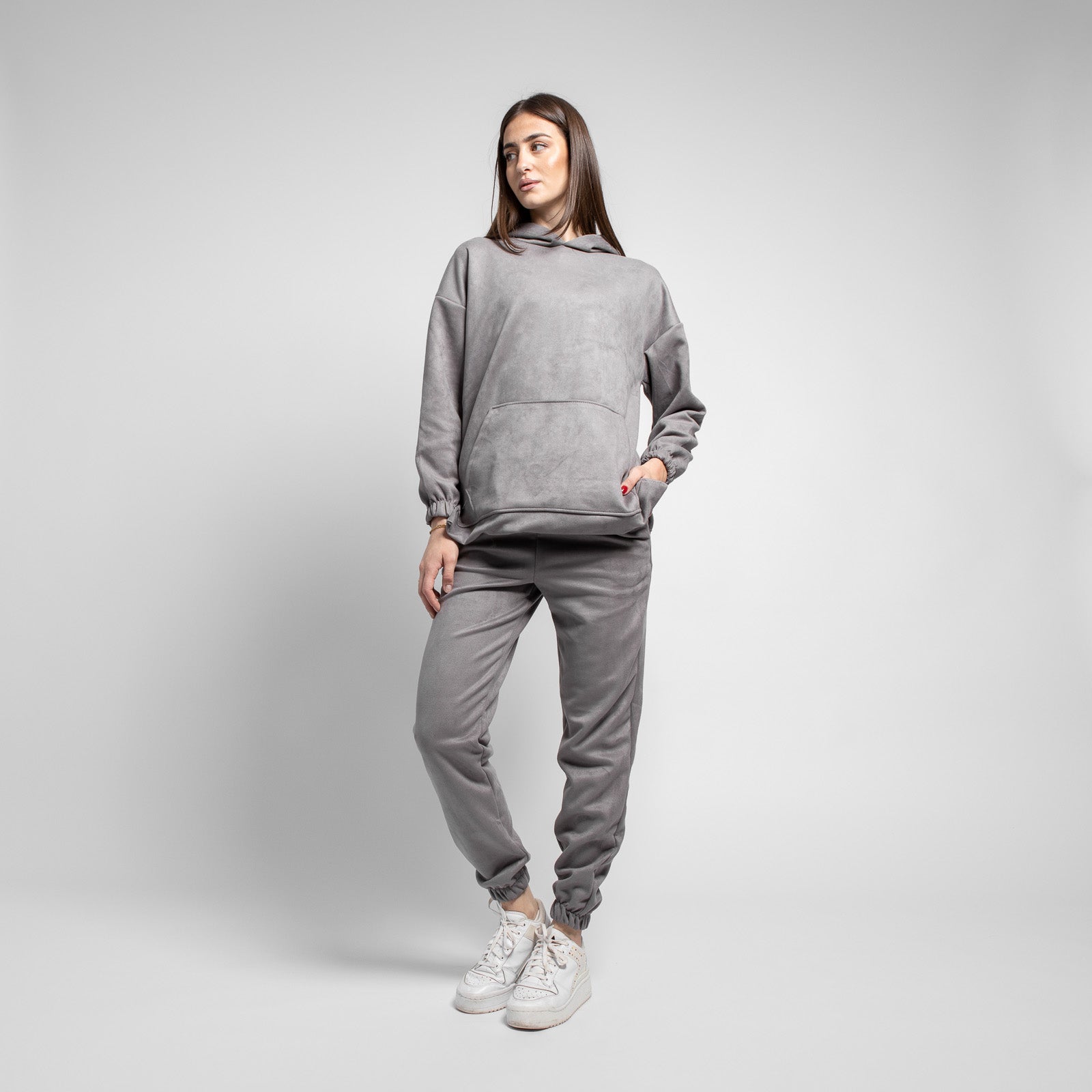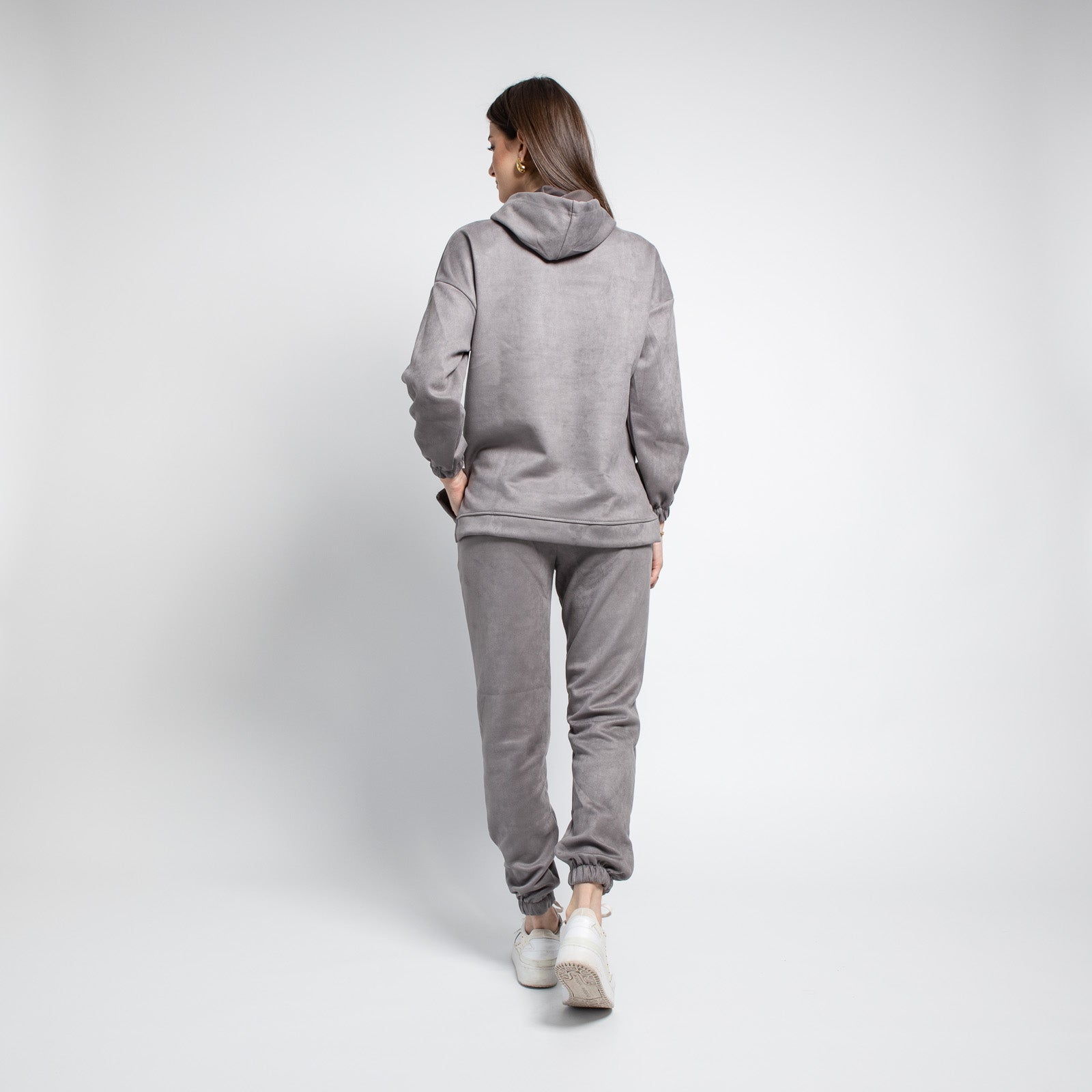Σετ φόρμα σουετ. Αποτελείται από μπλούζα με κουκούλα και μπροστινές τσέπες. Το μανίκι καταλήγει με λάστιχο. Το παντελόνι έχει λάστιχο στην μέση και λάστιχο στο τελείωμα. Διαθέτει τσέπες.