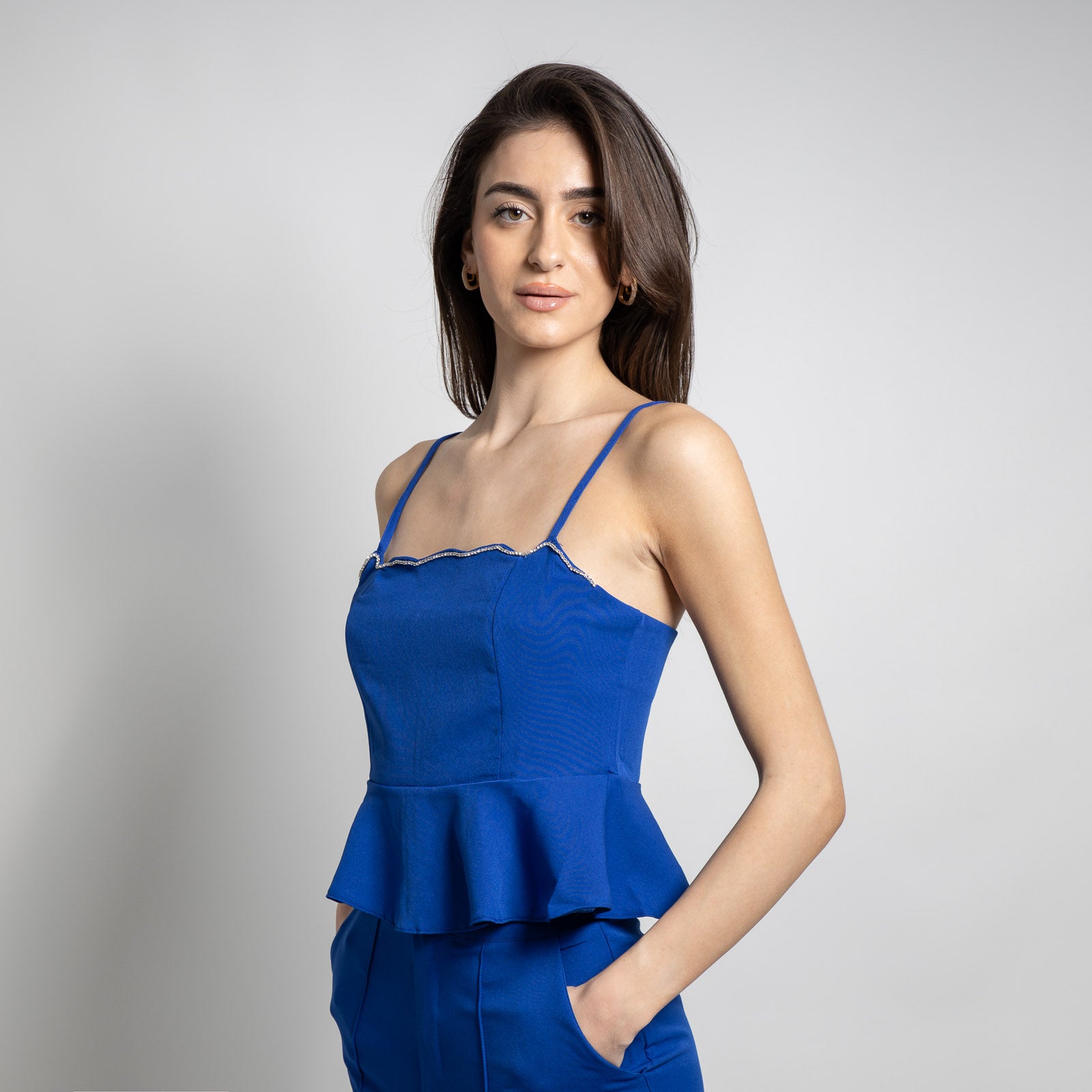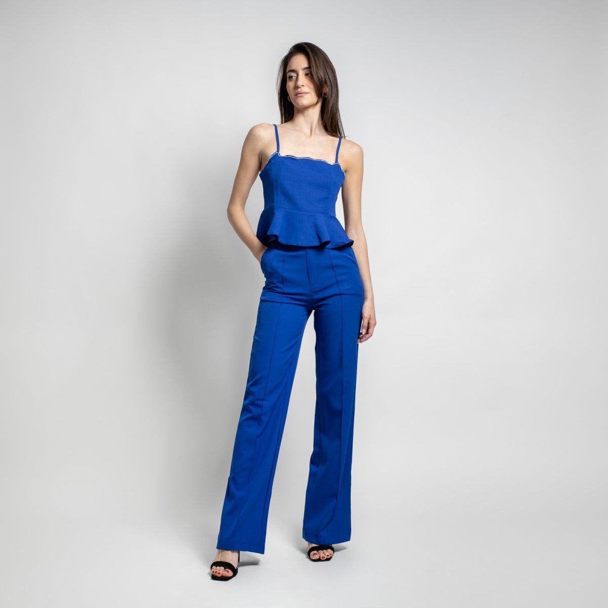 Συγκέντρωσε όλα τα βλέμματα πάνω σου με Σετ Τοπ - Παντελόνι Μπλε ρουά εμφάνιση που σε κάνει να ξεχωρίζεις κάθε στιγμή