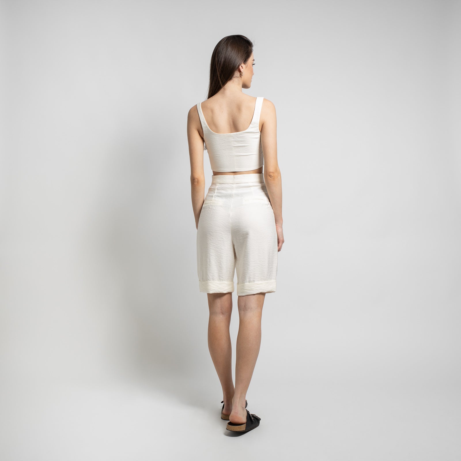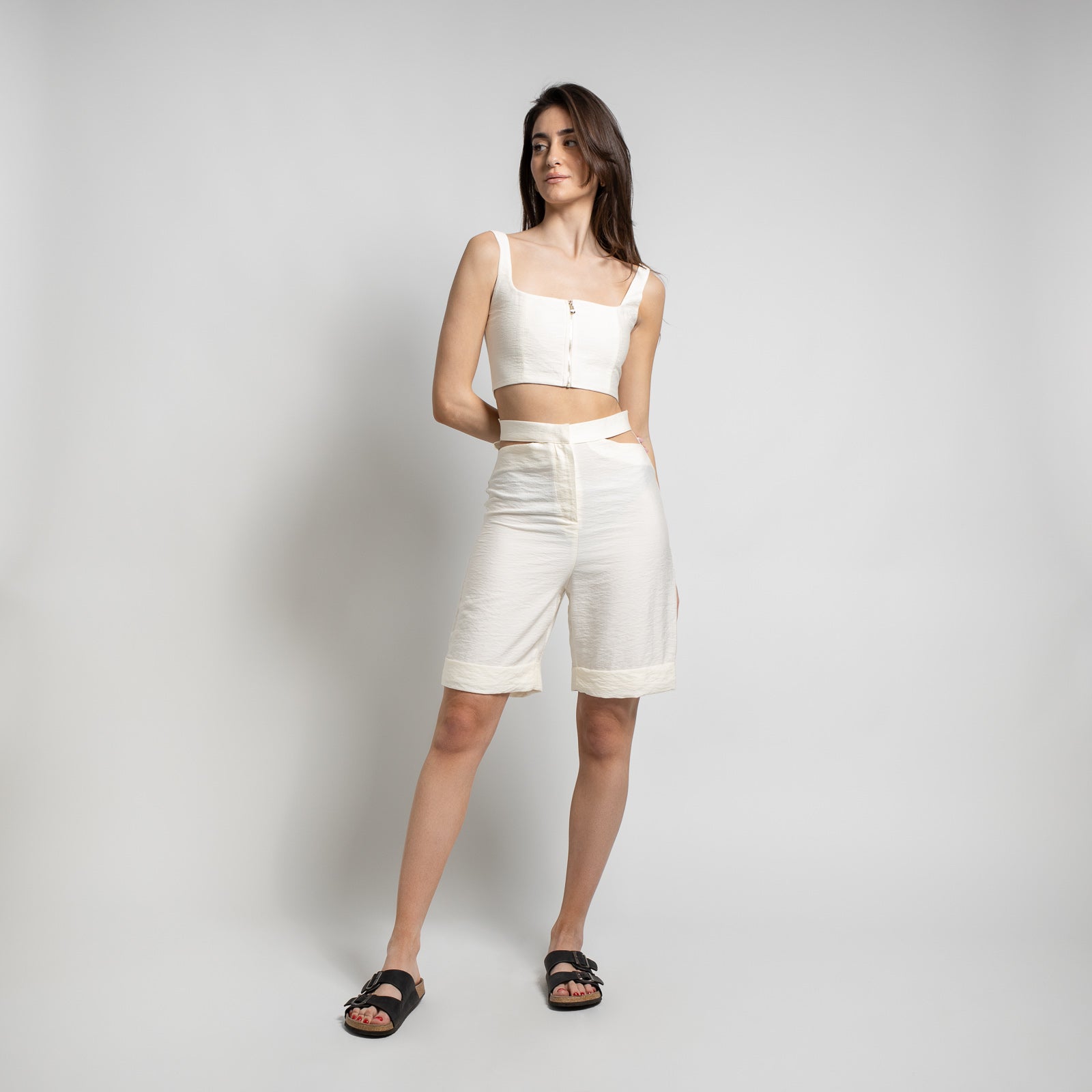 Συγκέντρωσε όλα τα βλέμματα πάνω σου με Βερμούδα Με Κόψιμο Εκρού εμφάνιση που σε κάνει να ξεχωρίζεις κάθε στιγμή
