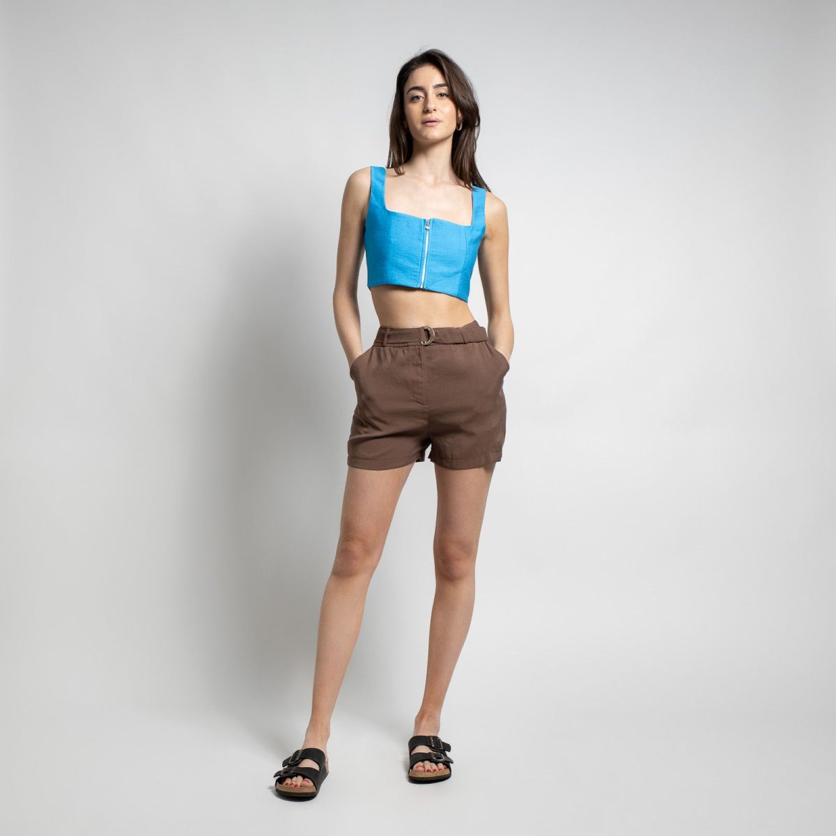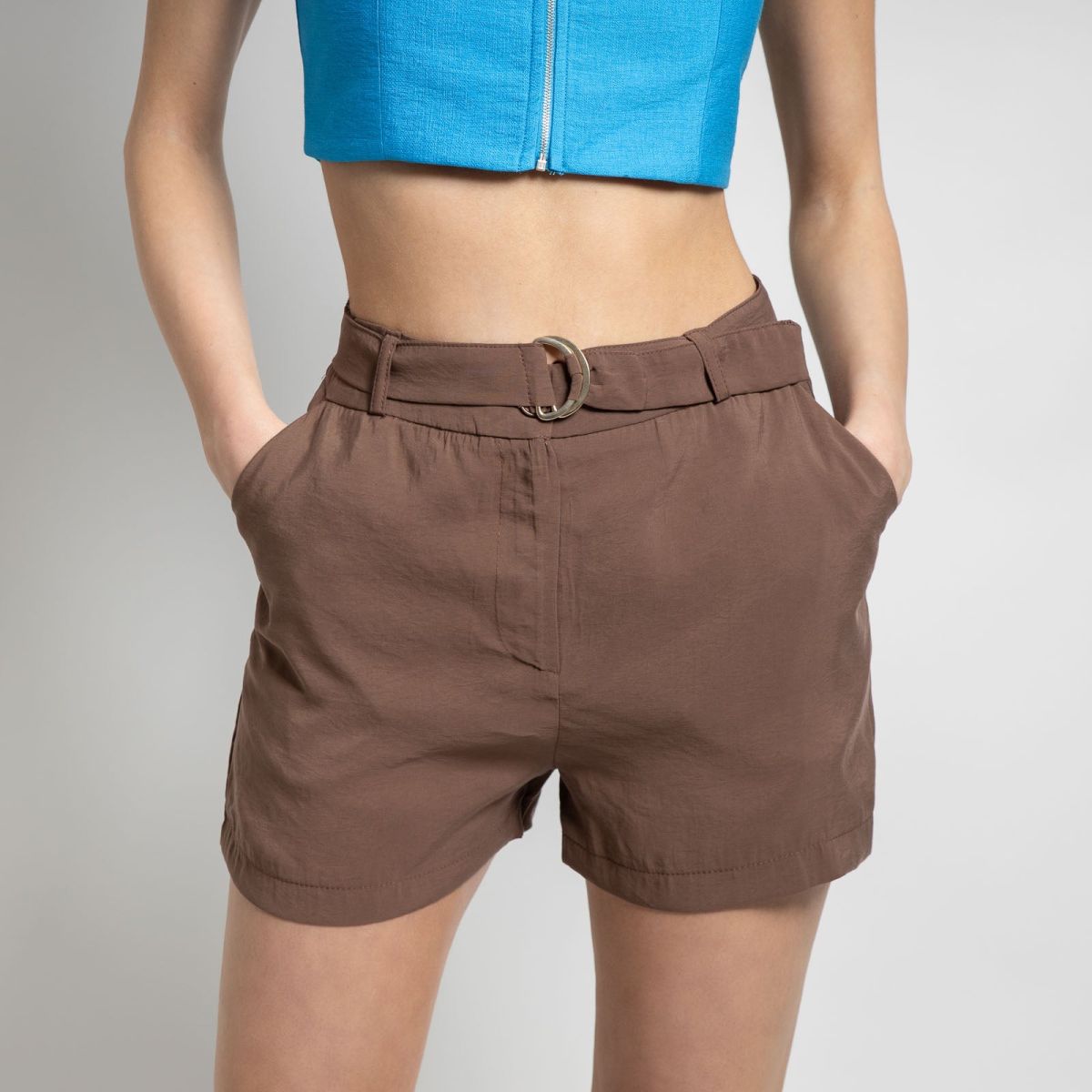 Κοντό Σορτς Με Ζώνη Καφέ (Κακάο)