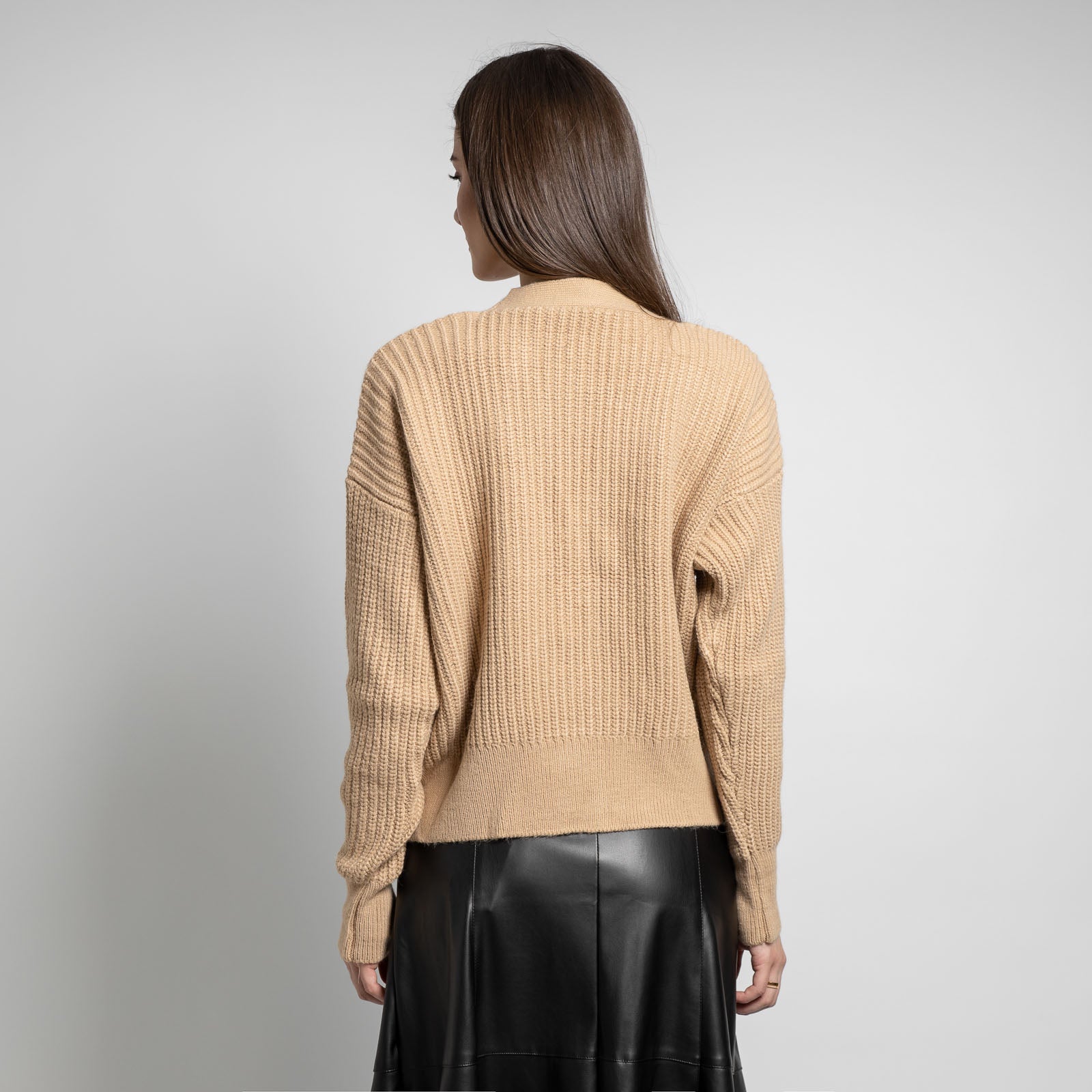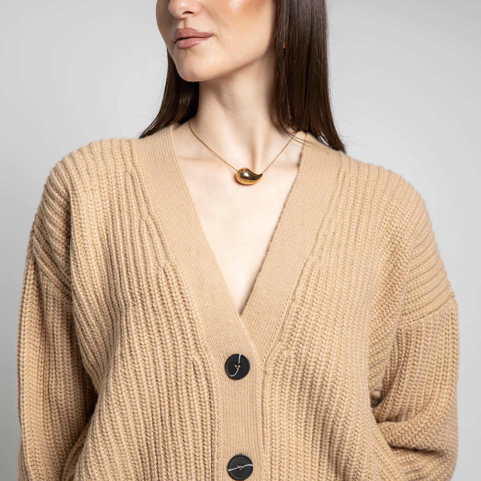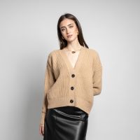 Πλεκτή κοντή ζακέτα με τρία κουμπιά και χοντρή πλέξη.