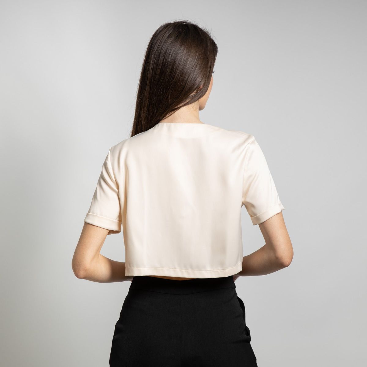 Συγκέντρωσε όλα τα βλέμματα πάνω σου με Σατέν Crop Jacket Ανοιχτό Μπεζ εμφάνιση που σε κάνει να ξεχωρίζεις κάθε στιγμή
